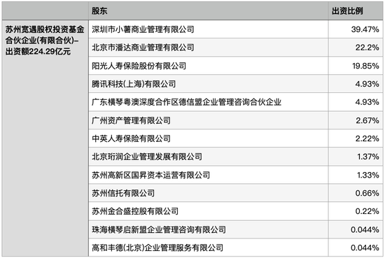如今交易初步落地,“苏州宽遇股权投资基金合伙企业”(以下简称苏州宽遇)正式成立,总出资额为224.29亿元。